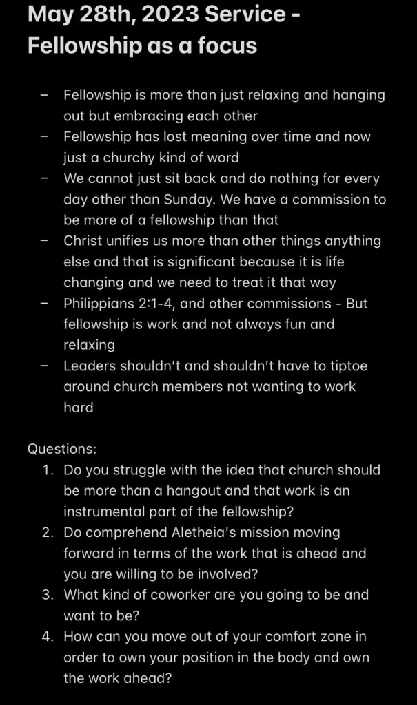 Sermon Notes: May 7th, 14th, 21st, and 28th of 2023